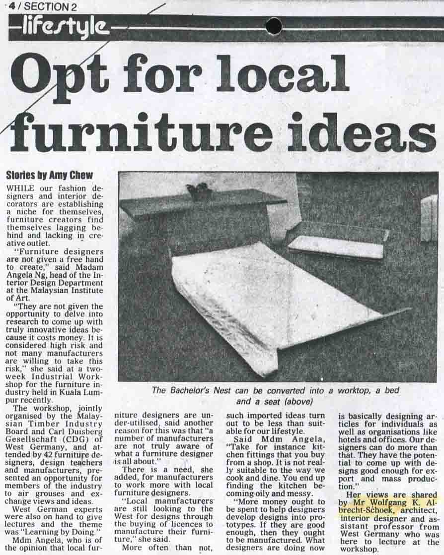Workshops 1985-1987 Kuala Lumpur, Design for home market and export, Malaysian Timber Industry Board