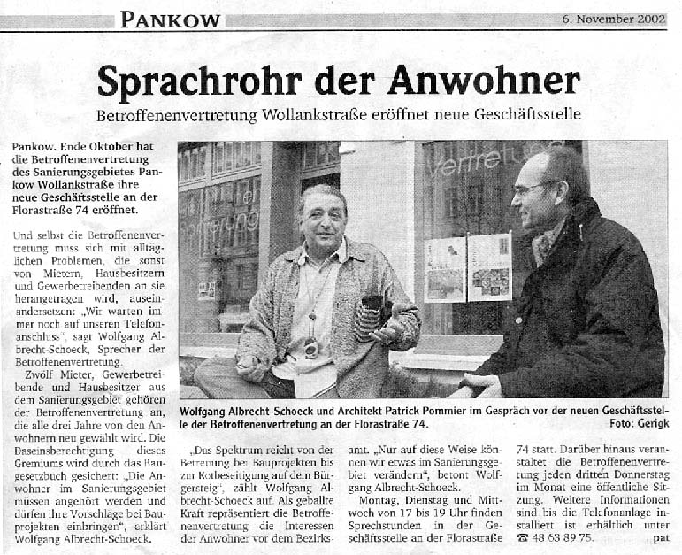 Eröffnung der Geschäftsstelle der BetroffenenVertretung des Sanierungsgebietes Pankow-Wollankstraße
