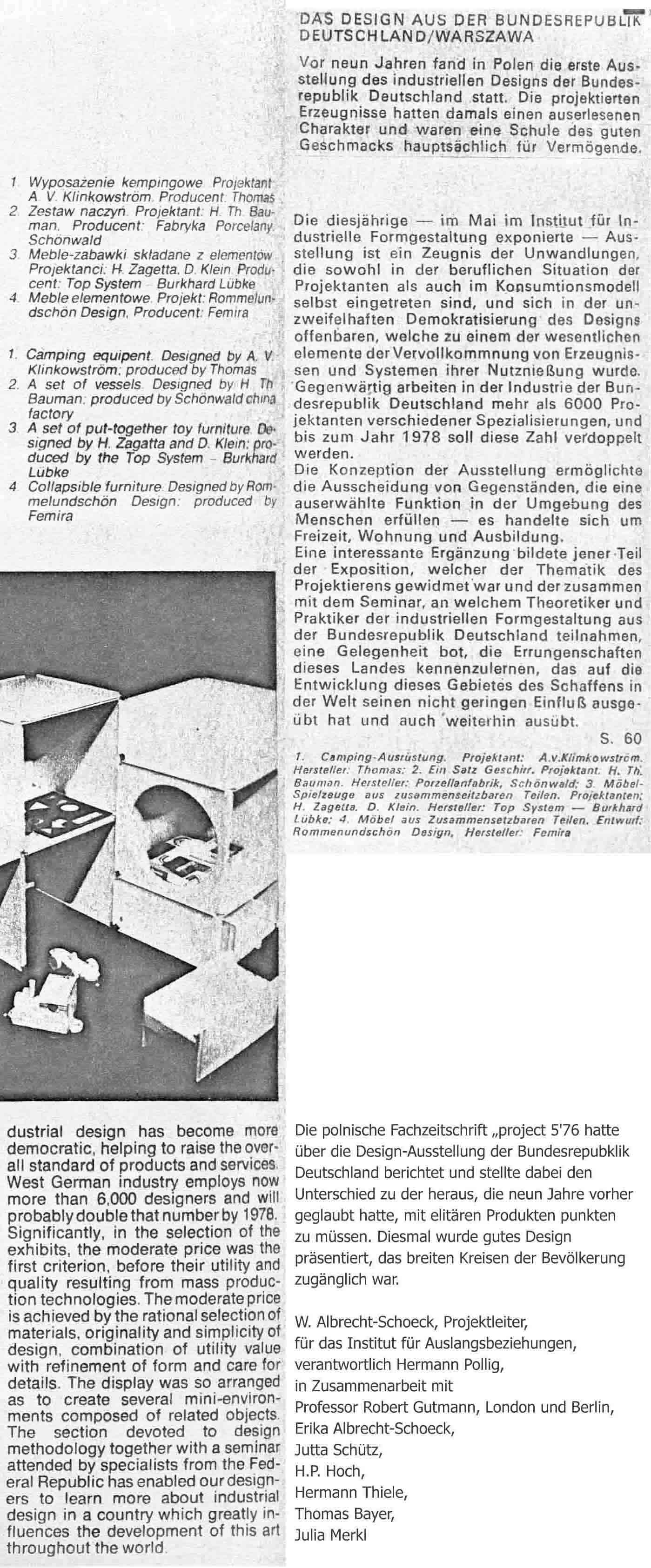 Design-Ausstellung Warschau 1976 – Fachzeitschrift “project” 5’76 /